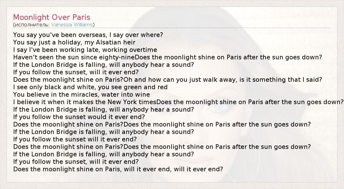 А как ты думаешь, о чем песня "Moonlight Over Paris" ?