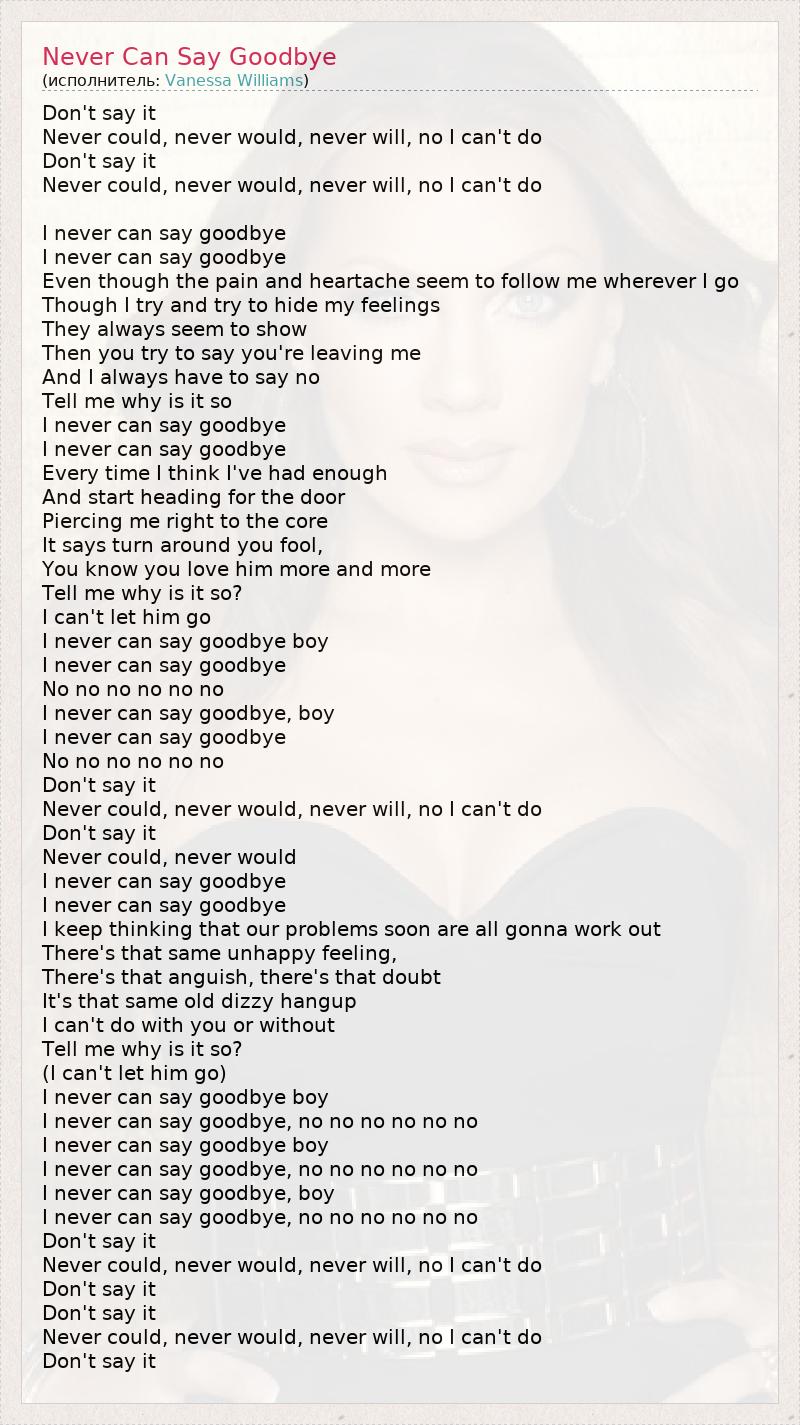 А как ты думаешь, о чем песня "Never Can Say Goodbye" ?