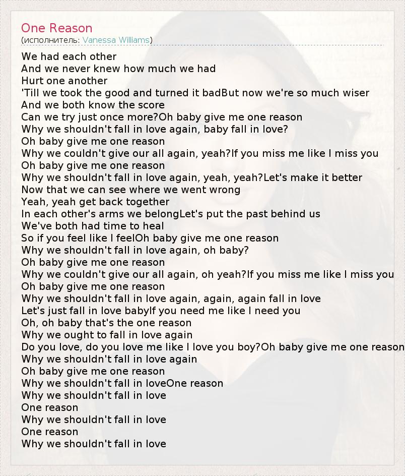 Oh baby give me one reason