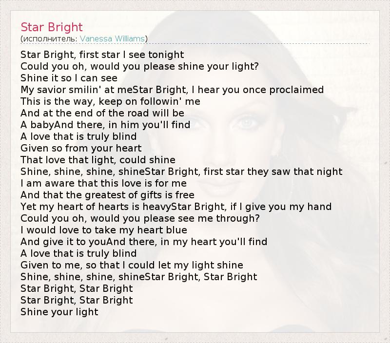 Shine, shine, shine, shineStar Bright, first star they saw that night