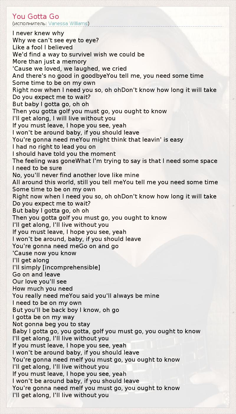 А как ты думаешь, о чем песня "You Gotta Go" ?