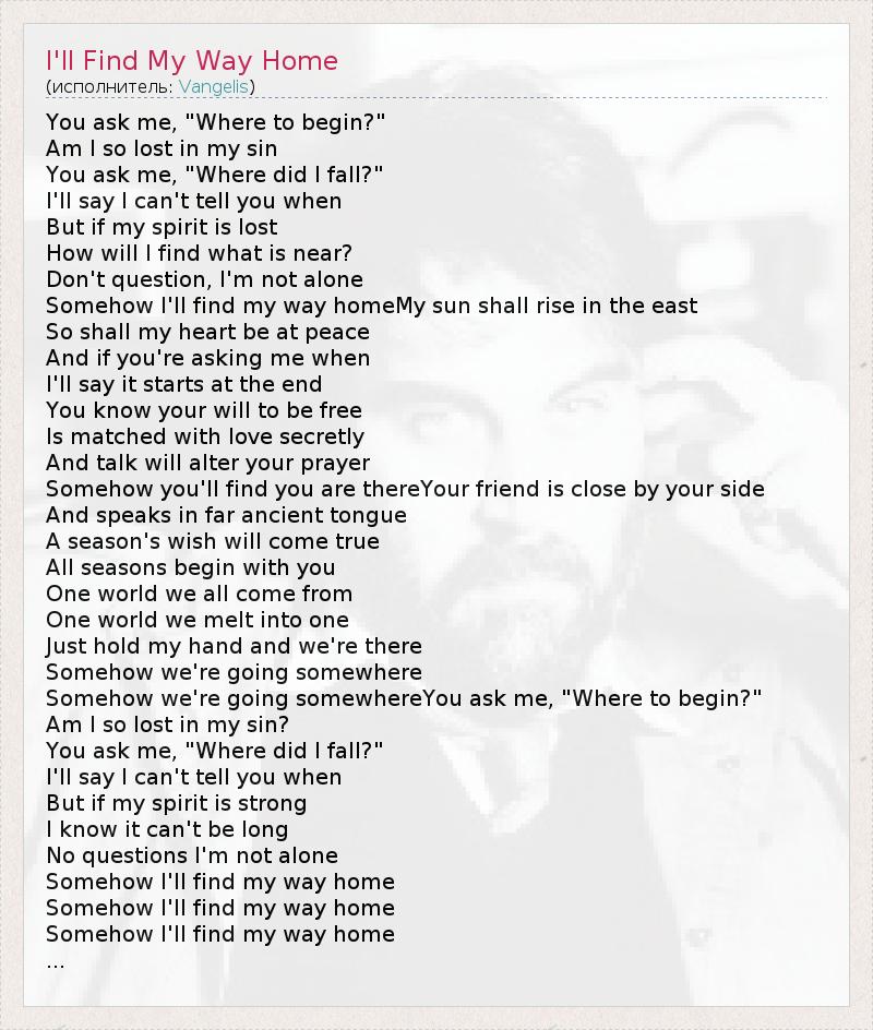 А как ты думаешь, о чем песня "I'll Find My Way Home" ?
