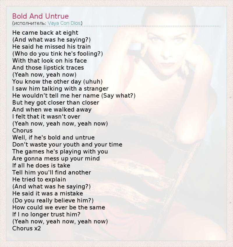 А как ты думаешь, о чем песня "Bold And Untrue" ?