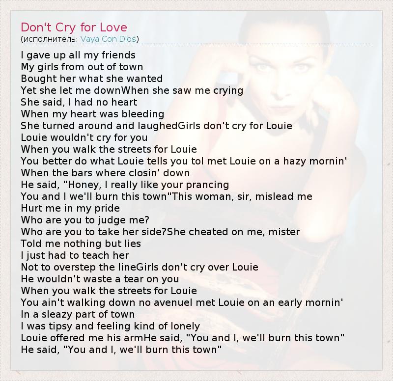 А как ты думаешь, о чем песня "Don't Cry for Love" ?