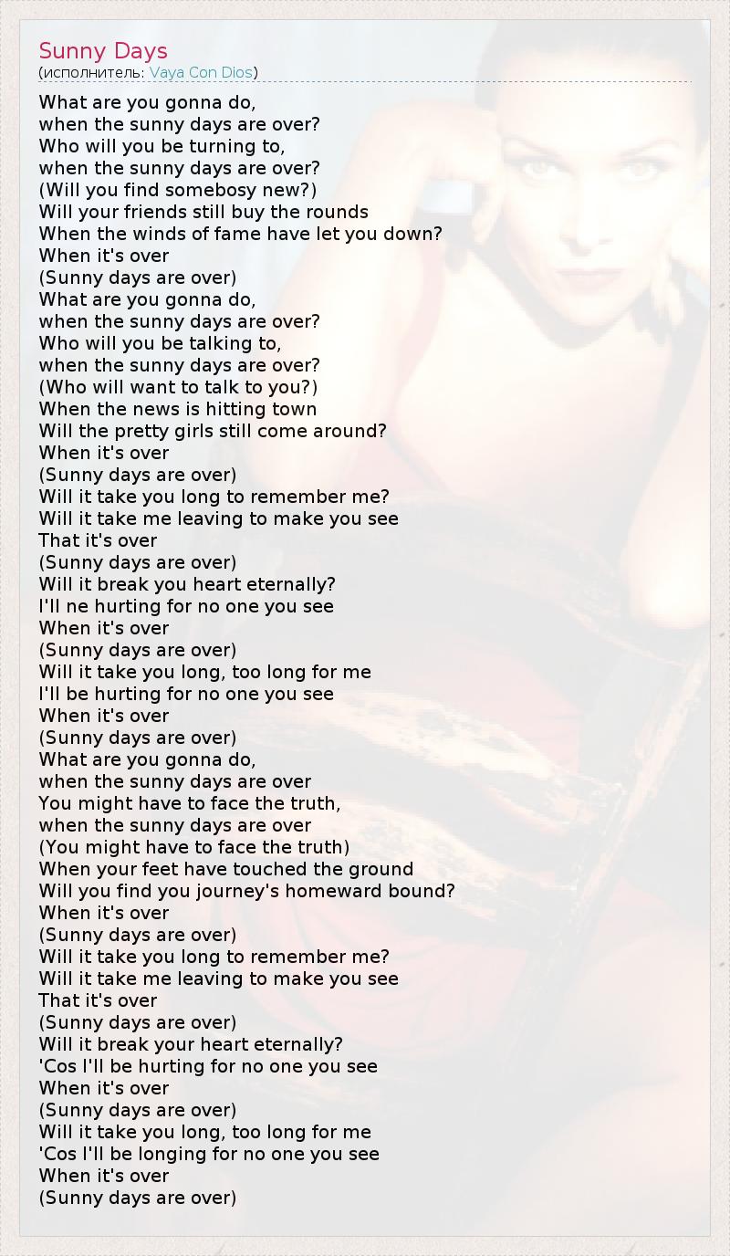 А как ты думаешь, о чем песня "Sunny Days" ?