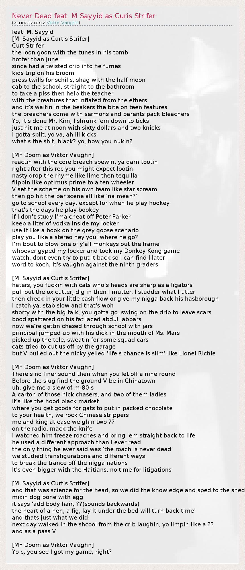 А как ты думаешь, о чем песня "Never Dead feat. M Sayyid as Curis Strifer" ?