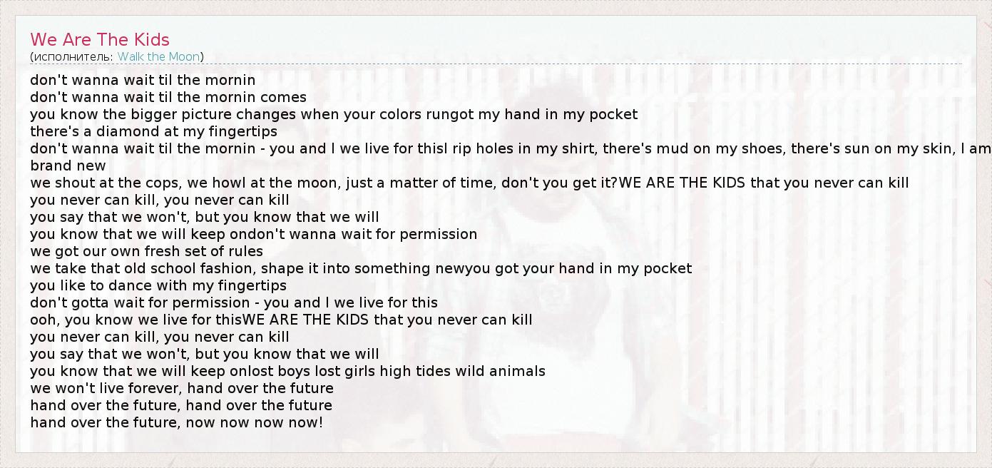 А как ты думаешь, о чем песня "We Are The Kids" ?