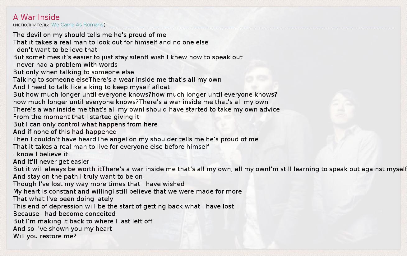 А как ты думаешь, о чем песня "A War Inside" ?