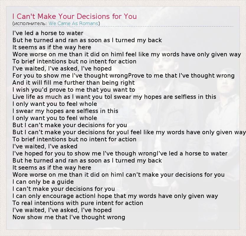 ГлавнаяИсполнителиWe Came As RomansI Can't Make Your Decisions for You