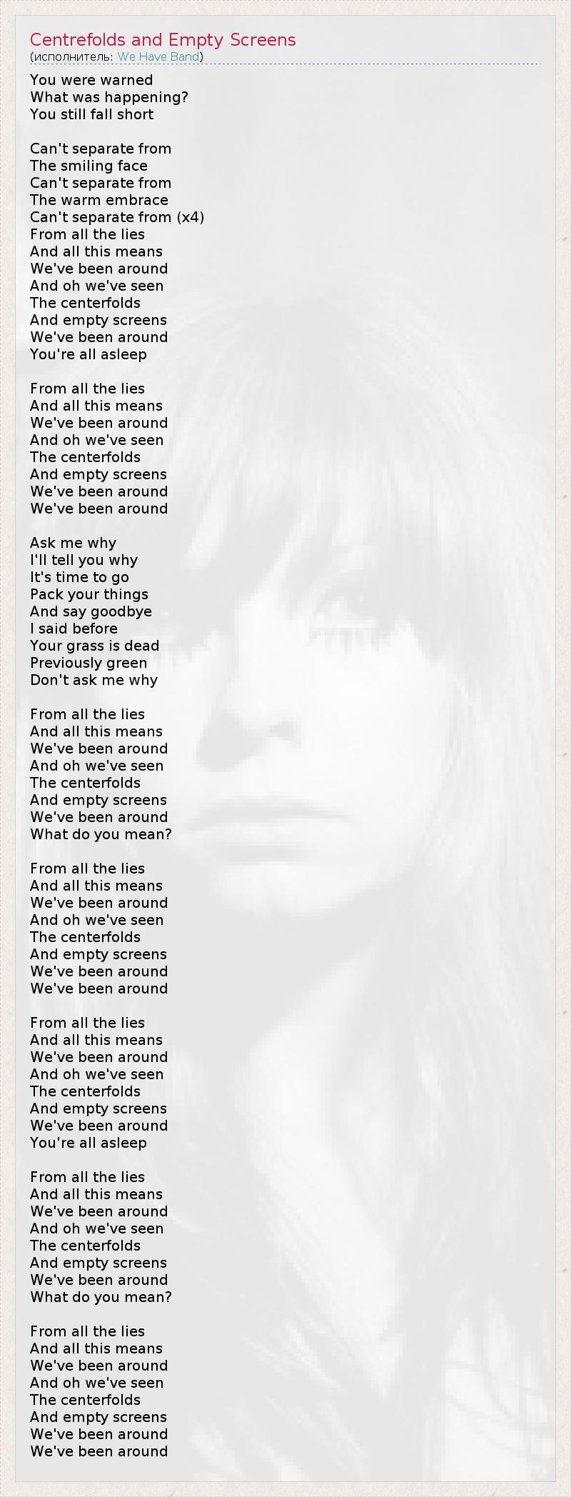 ГлавнаяИсполнителиWe Have BandCentrefolds and Empty Screens
