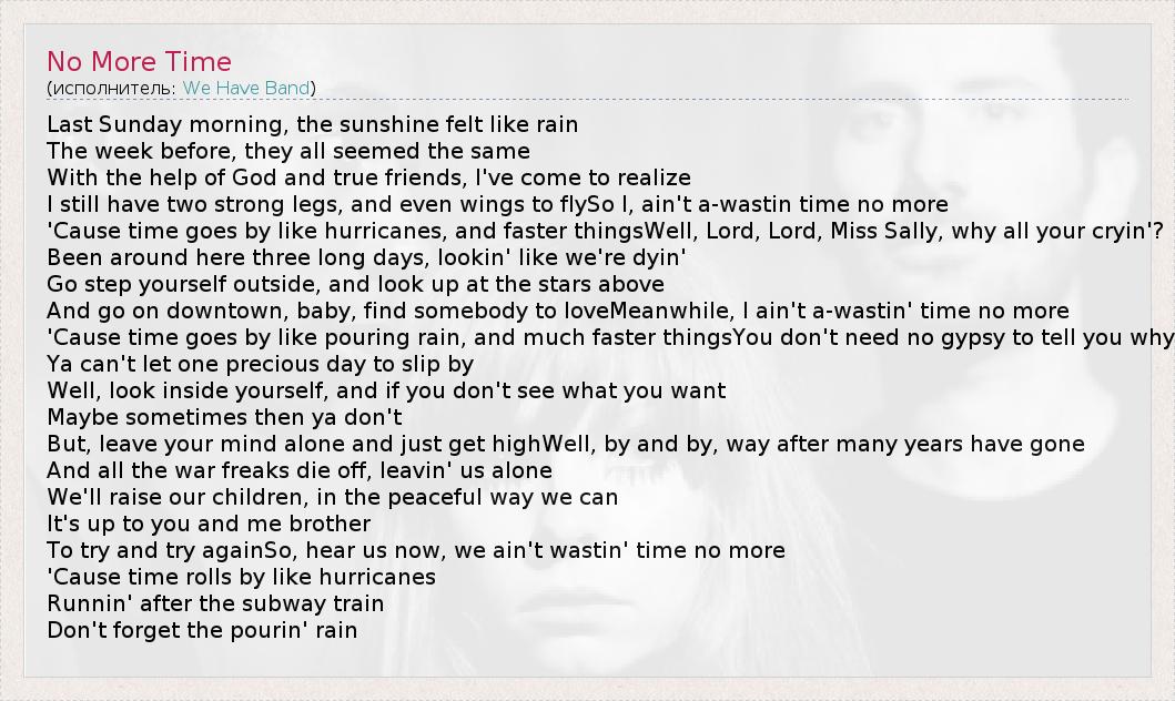 I still have two strong legs, and even wings to flySo I, ain't a-wastin time no more
