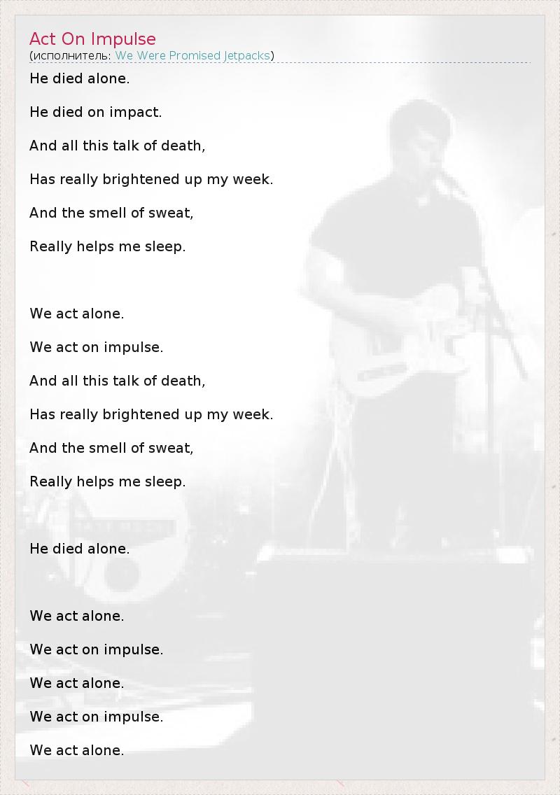 А как ты думаешь, о чем песня "Act On Impulse" ?
