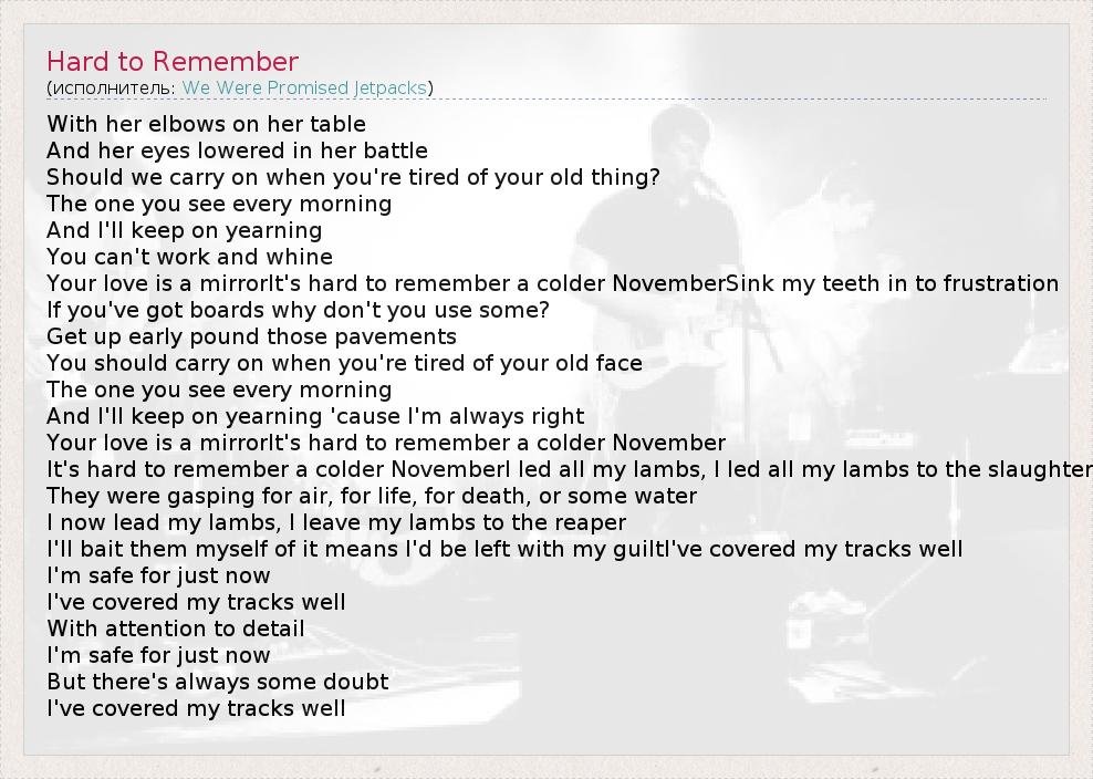 А как ты думаешь, о чем песня "Hard to Remember" ?