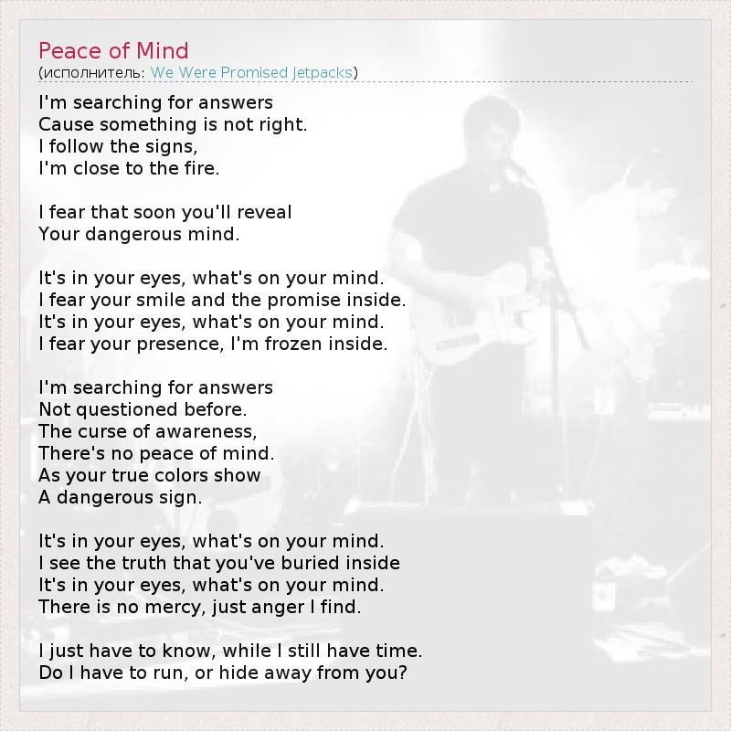 А как ты думаешь, о чем песня "Peace of Mind" ?