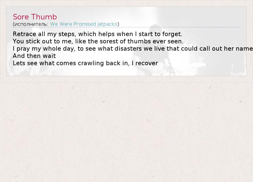 А как ты думаешь, о чем песня "Sore Thumb" ?
