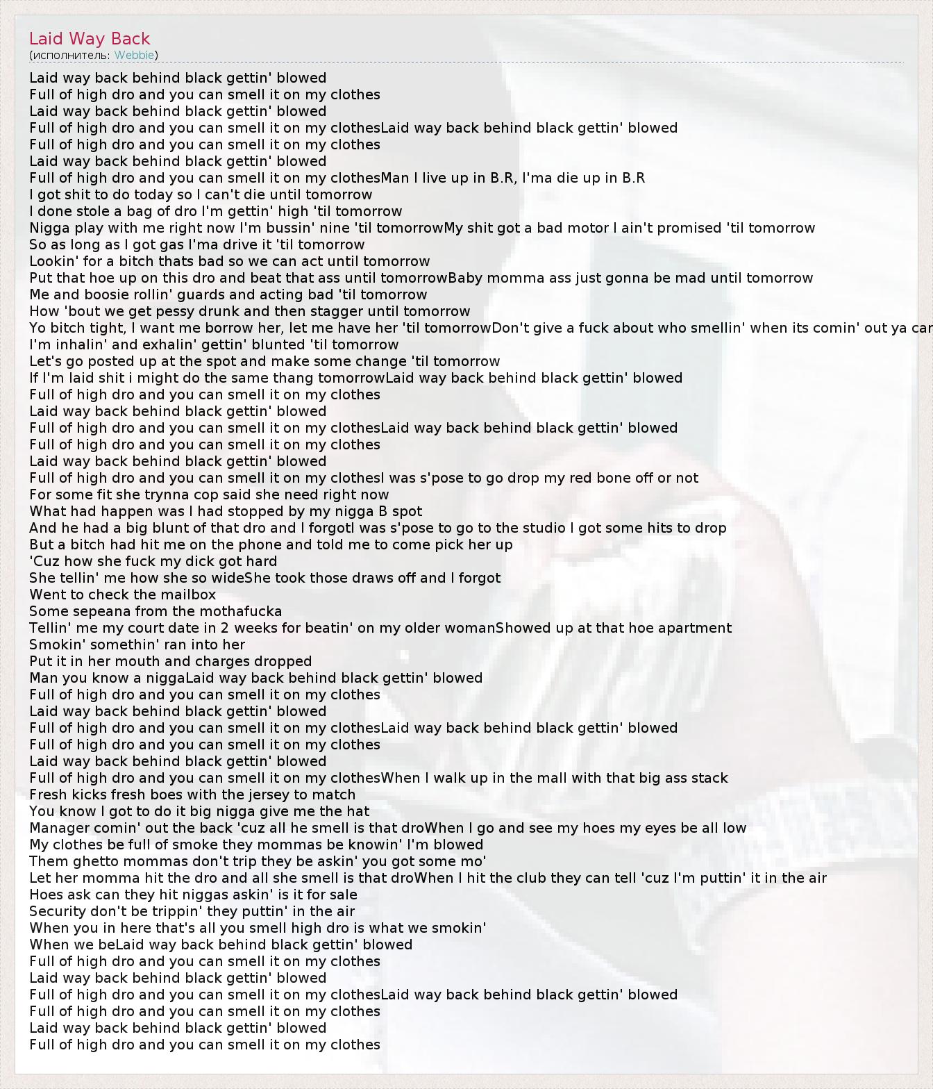 А как ты думаешь, о чем песня "Laid Way Back" ?