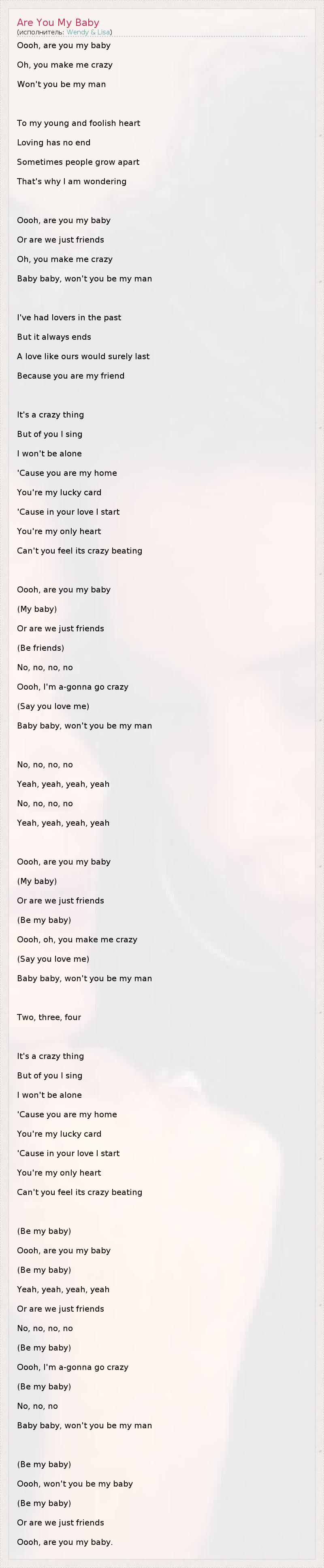 А как ты думаешь, о чем песня "Are You My Baby" ?