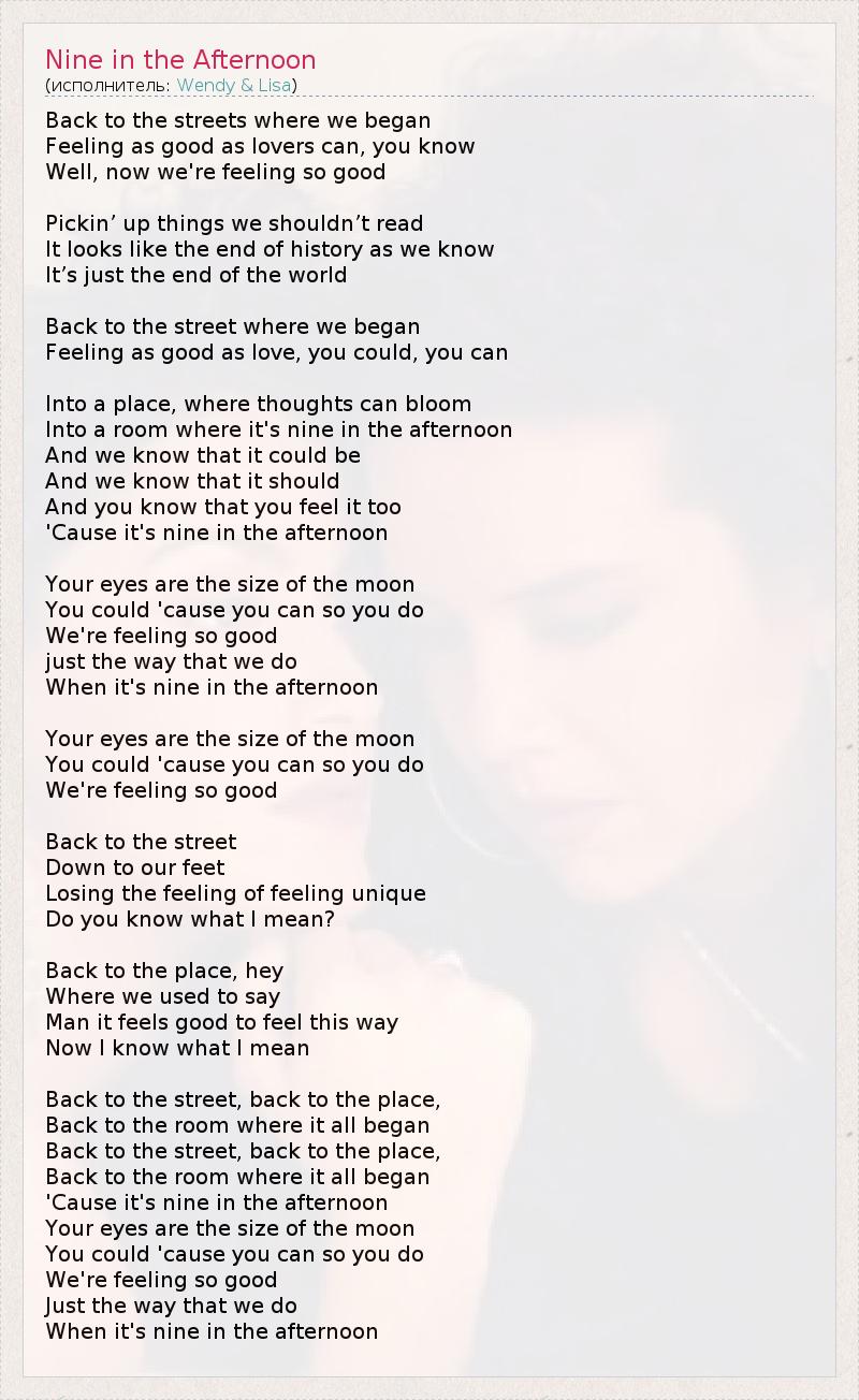 'Cause it's nine in the afternoon