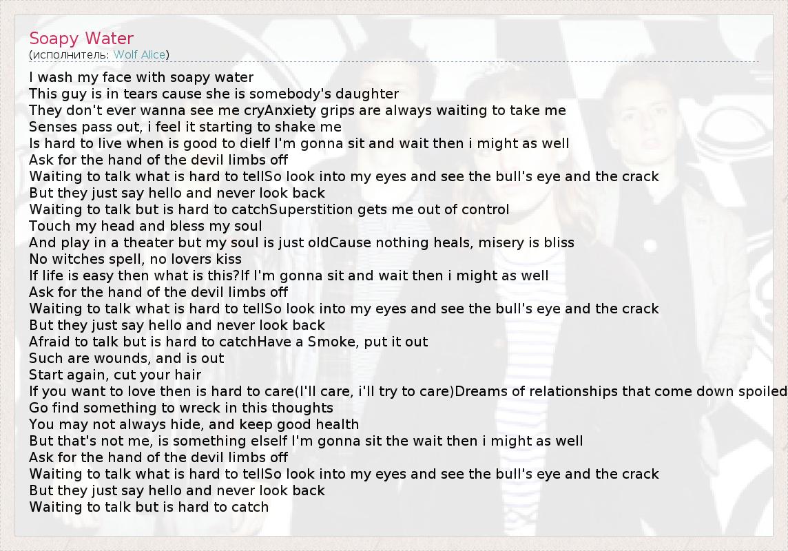 А как ты думаешь, о чем песня "Soapy Water" ?