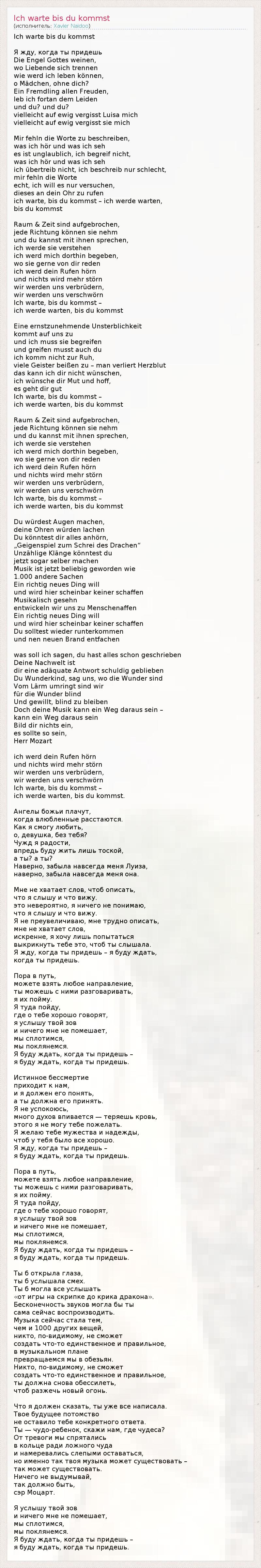 Ich Warte, бис-дю-kommst - Ich Werde Warten,