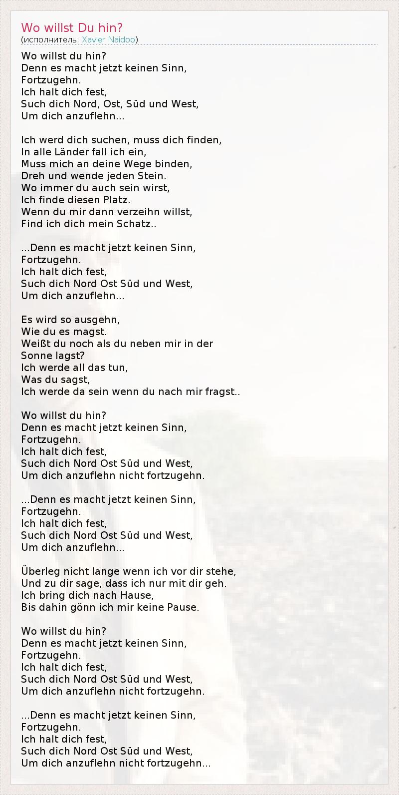 А как ты думаешь, о чем песня "Wo willst Du hin?" ?