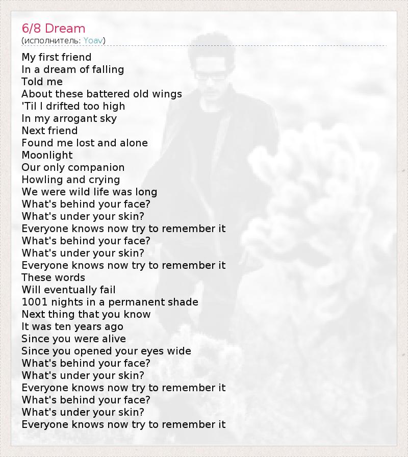 А как ты думаешь, о чем песня "6/8 Dream" ?