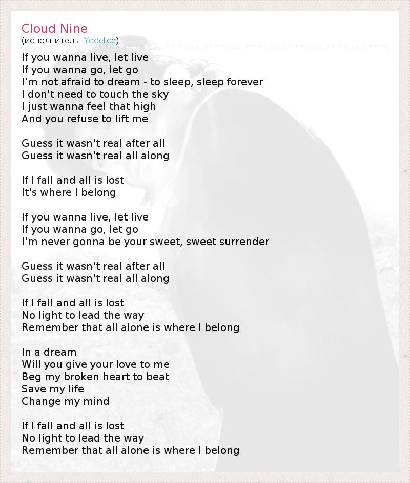 А как ты думаешь, о чем песня "Cloud Nine" ?