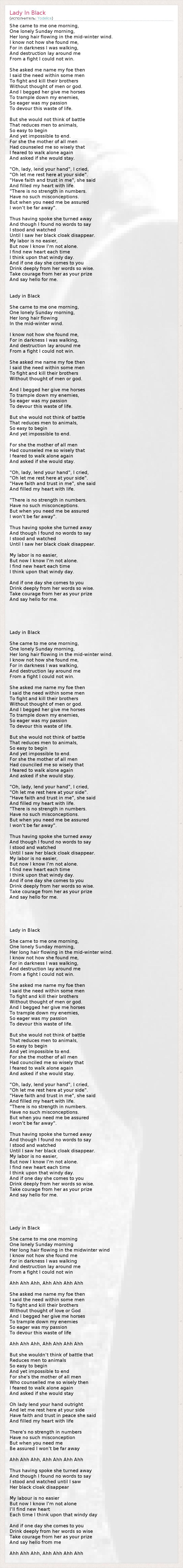 А как ты думаешь, о чем песня "Lady In Black" ?
