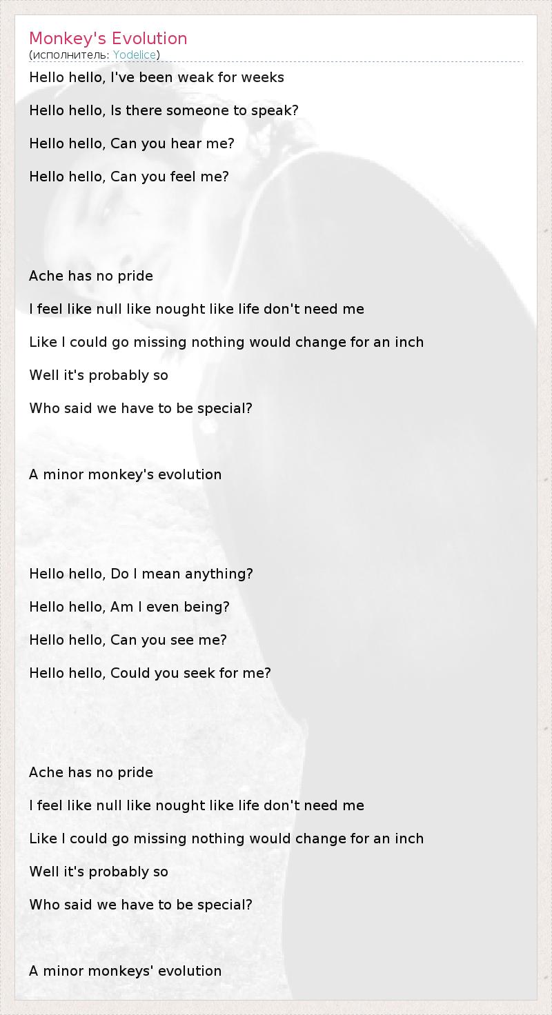А как ты думаешь, о чем песня "Monkey's Evolution" ?