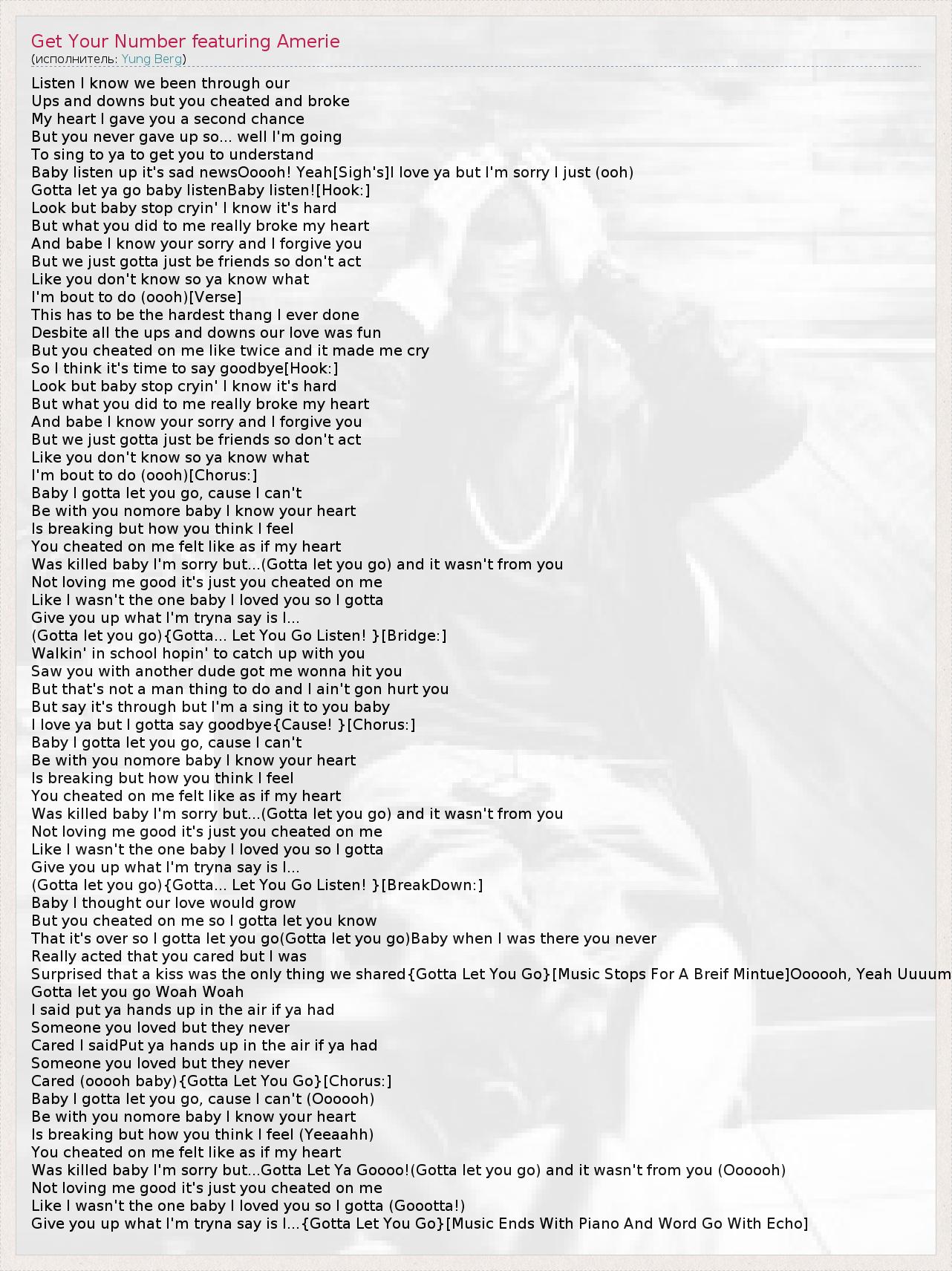 ГлавнаяИсполнителиYung BergGet Your Number featuring Amerie