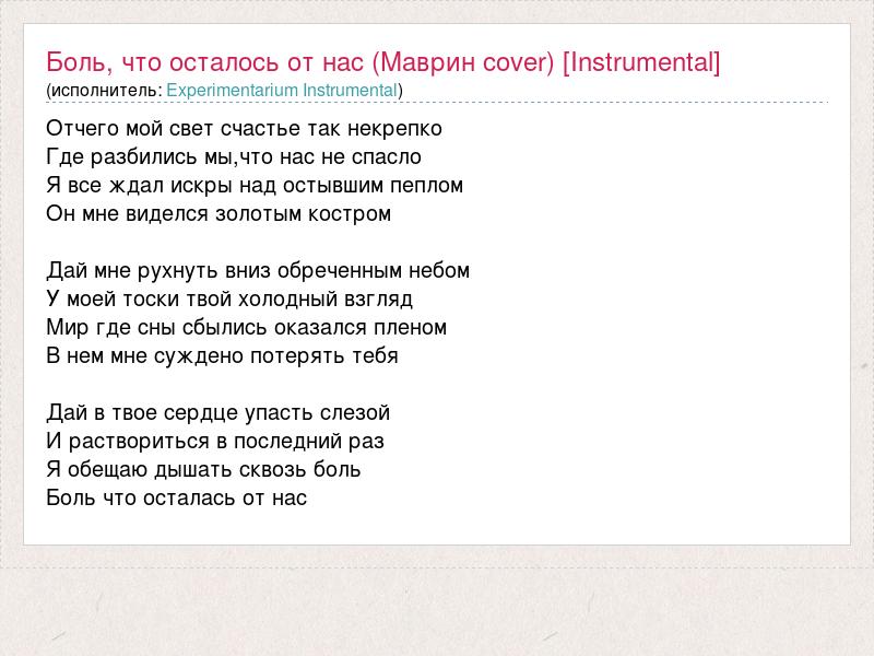 А как ты думаешь, о чем песня "Боль, что осталось от нас (Маврин cover) [Instrumental]" ?