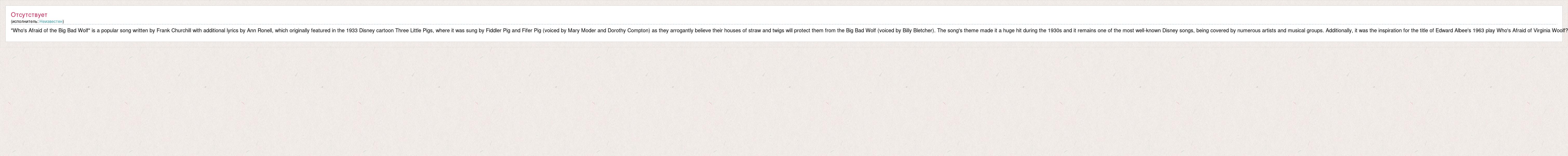 А как ты думаешь, о чем песня ""Who's Afraid of the Big Bad Wolf" is a popular song written" ?