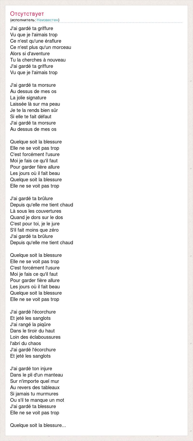 А как ты думаешь, о чем песня "J'ai gardé ta griffure" ?