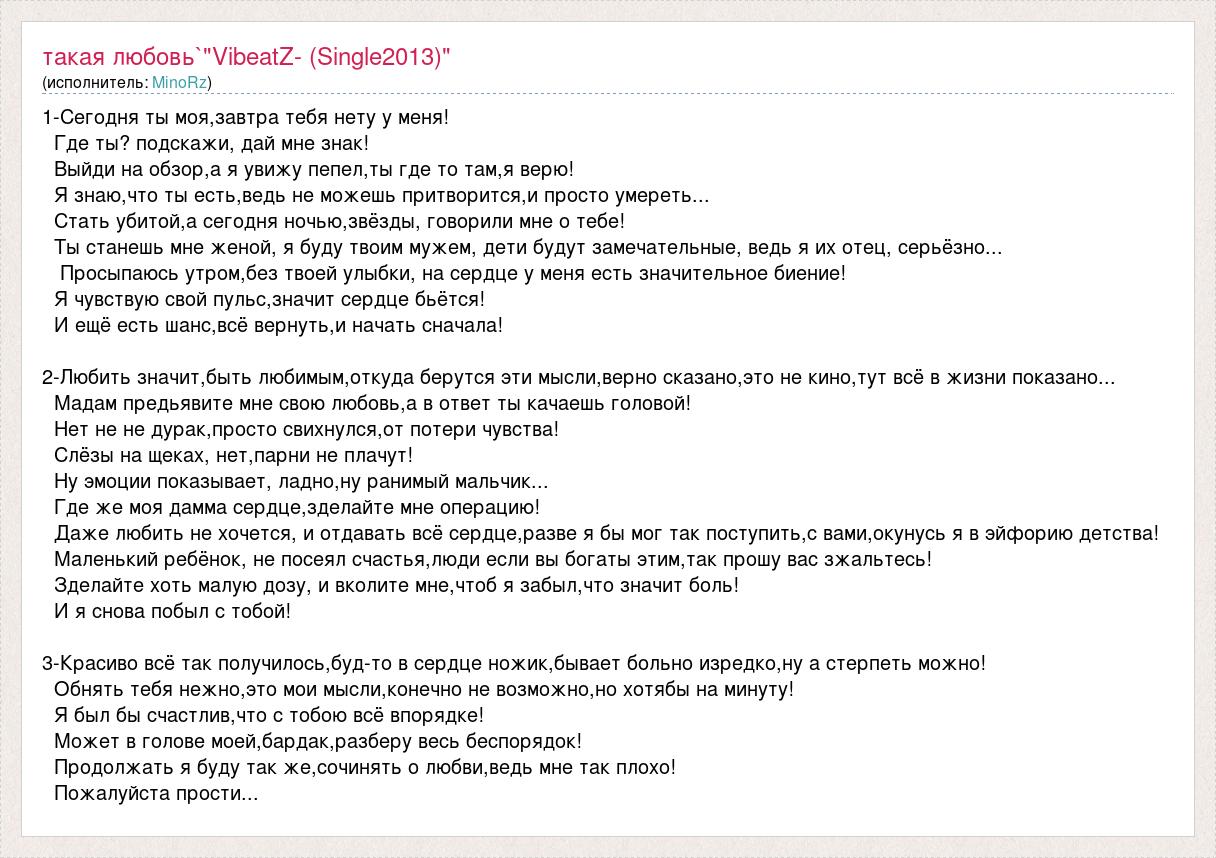 А как ты думаешь, о чем песня "1-Сегодня ты моя,завтра тебя нету у меня!" ?