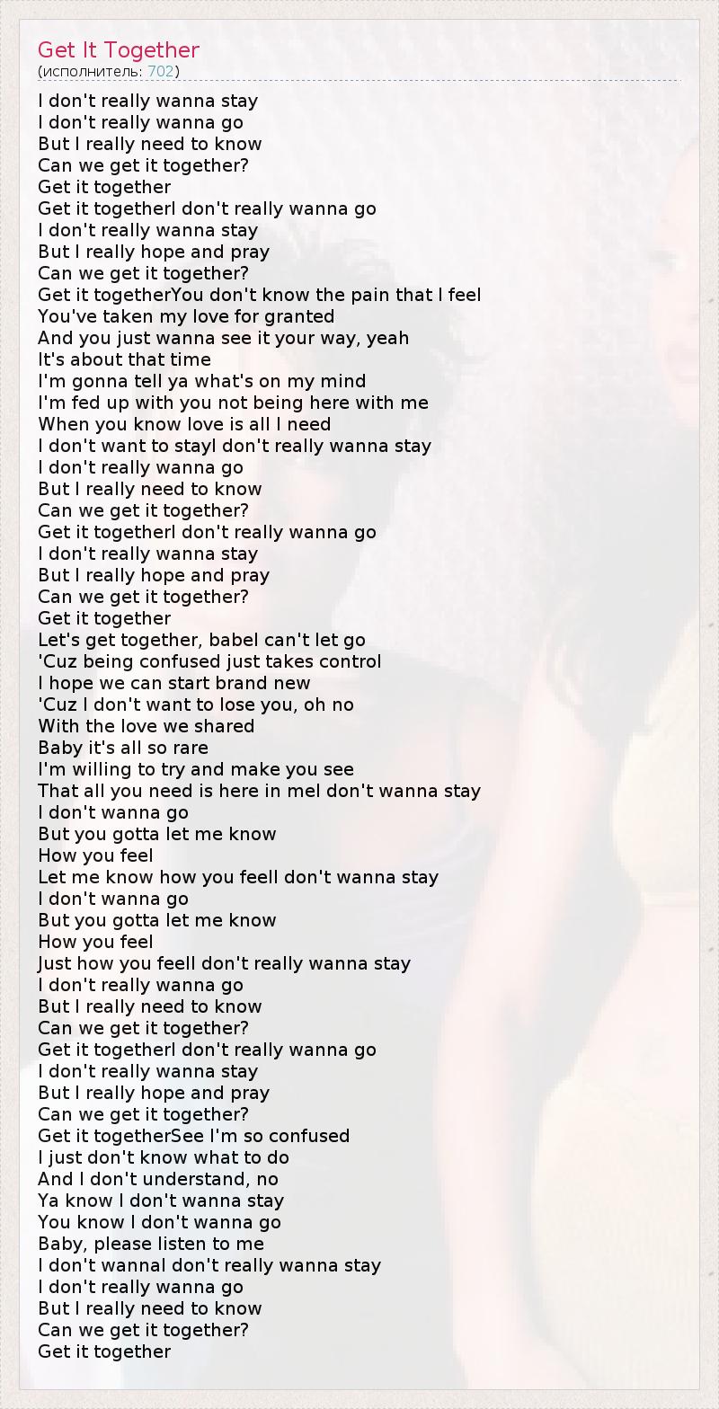 Get it togetherI don't really wanna go