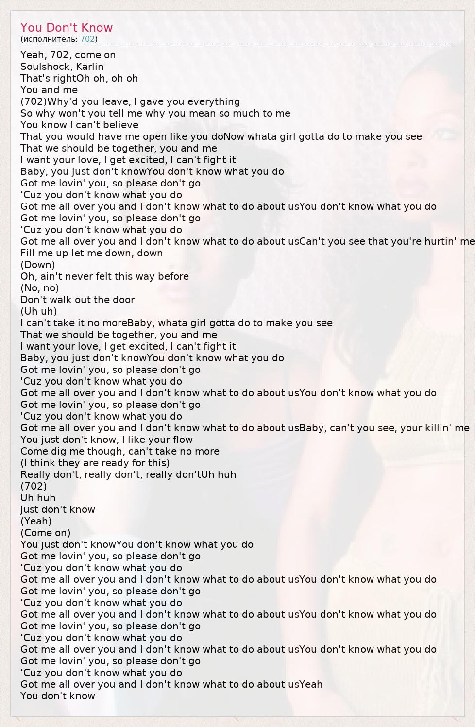 А как ты думаешь, о чем песня "You Don't Know" ?