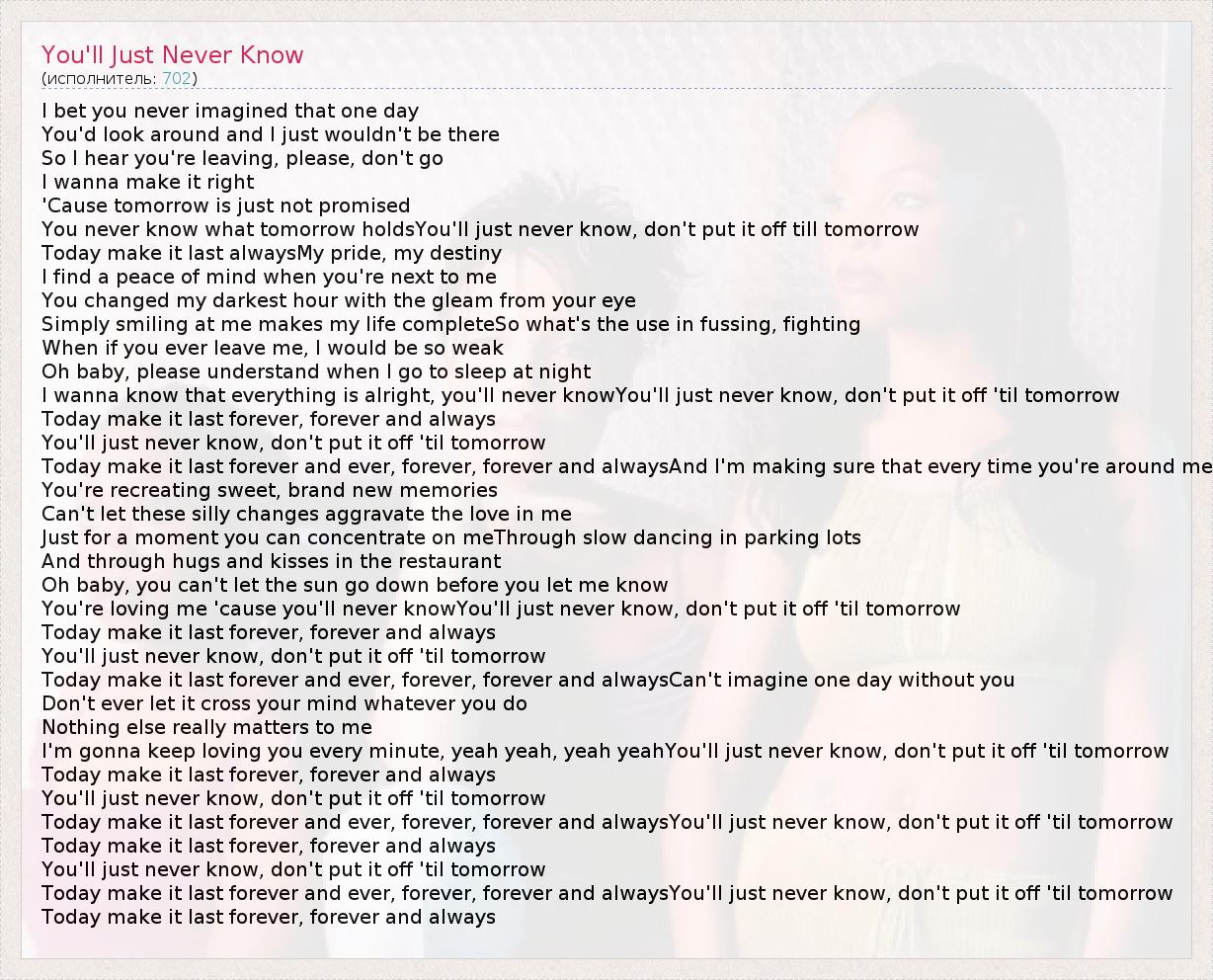 ГлавнаяИсполнители702You'll Just Never Know