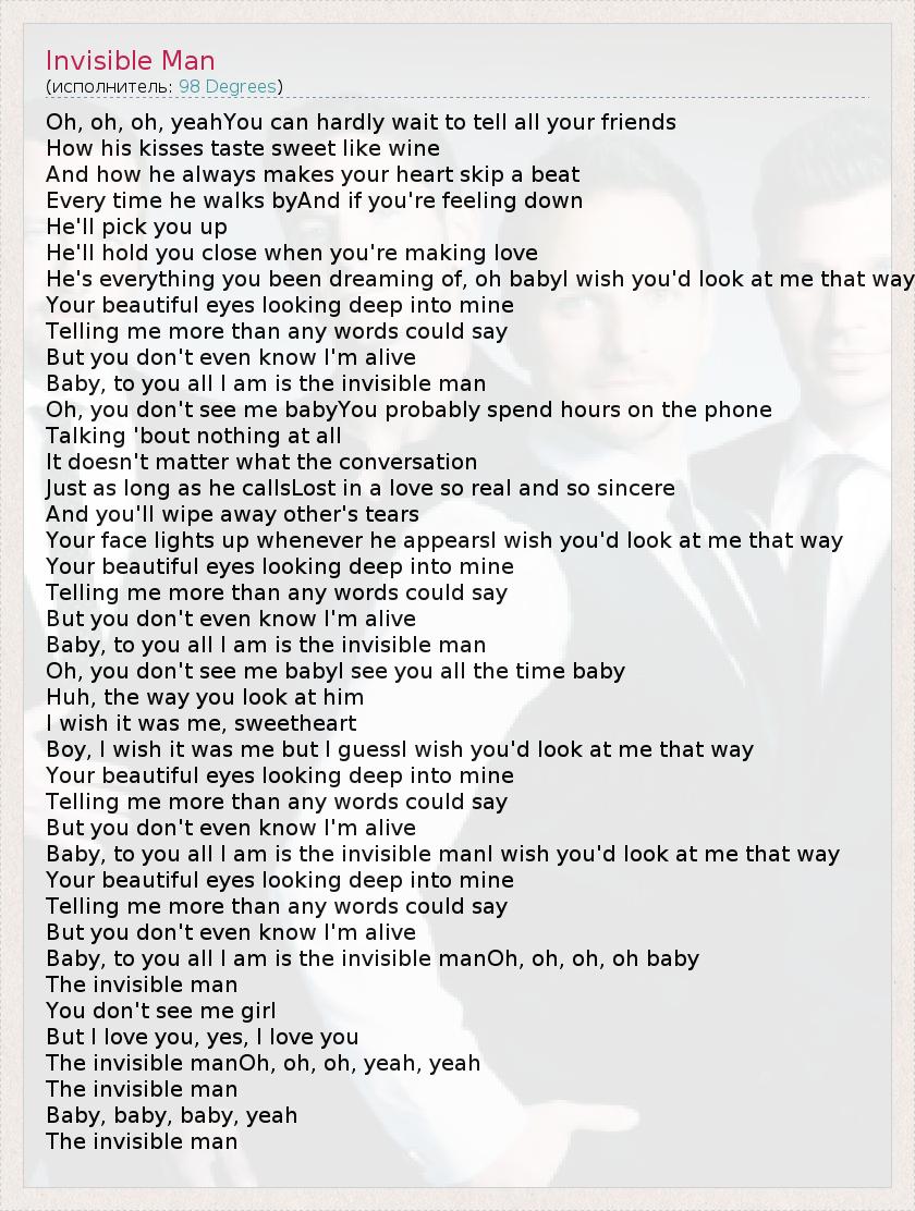 Baby, to you all I am is the invisible manOh, oh, oh, oh baby