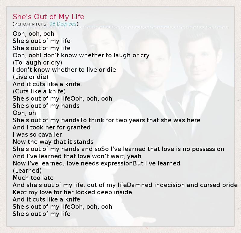 А как ты думаешь, о чем песня "She's Out of My Life" ?