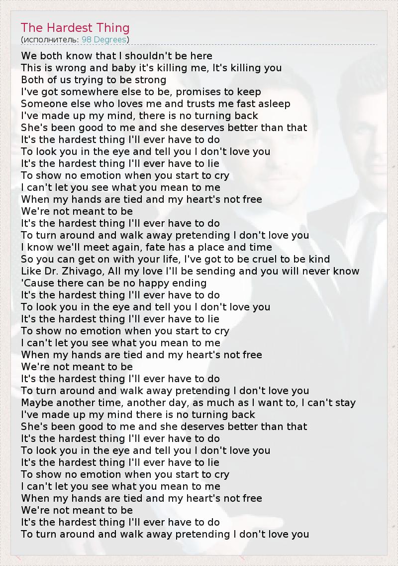 А как ты думаешь, о чем песня "The Hardest Thing" ?