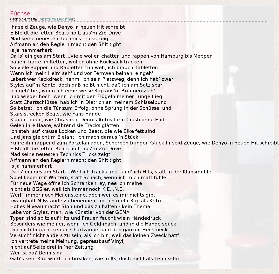 Führe ihn rappend zum Porzelanladen, Scherben bringen GlückIhr seid Zeuge, wie Denyo 'n neuen Hit schreibt