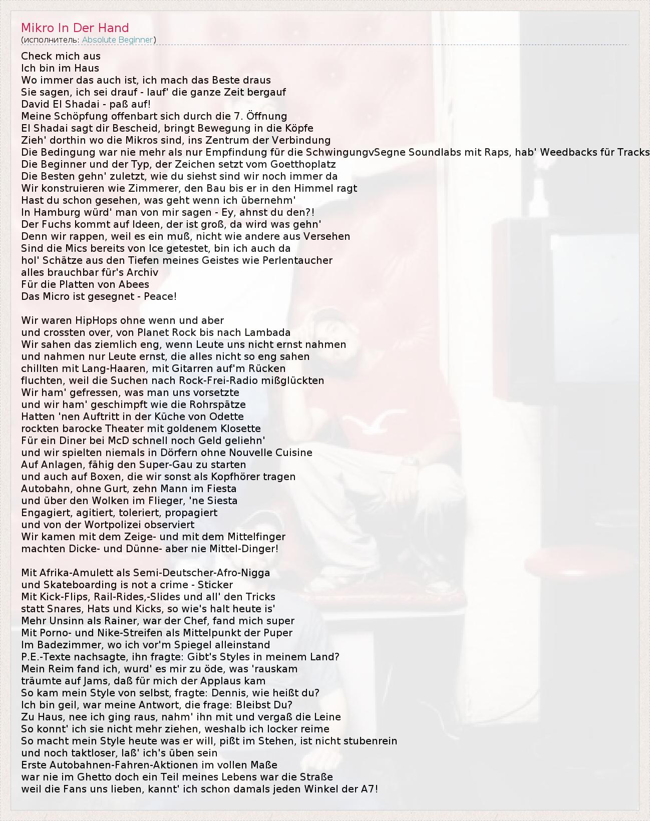 А как ты думаешь, о чем песня "Mikro In Der Hand" ?