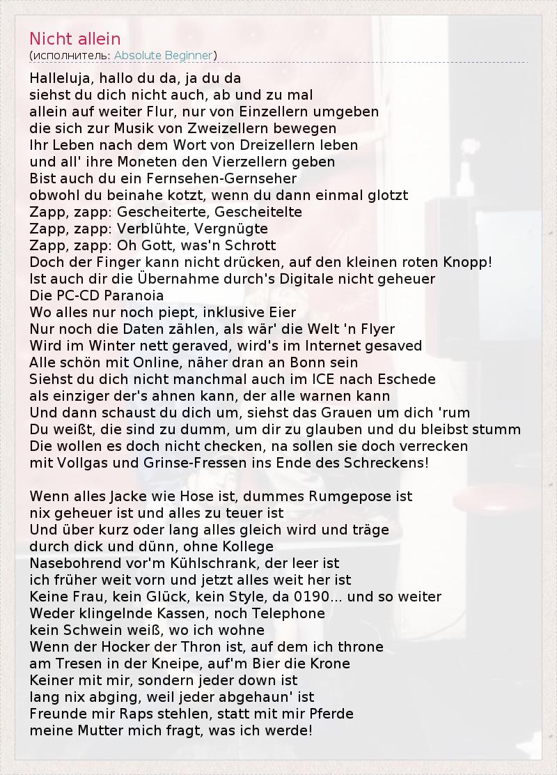А как ты думаешь, о чем песня "Nicht allein" ?