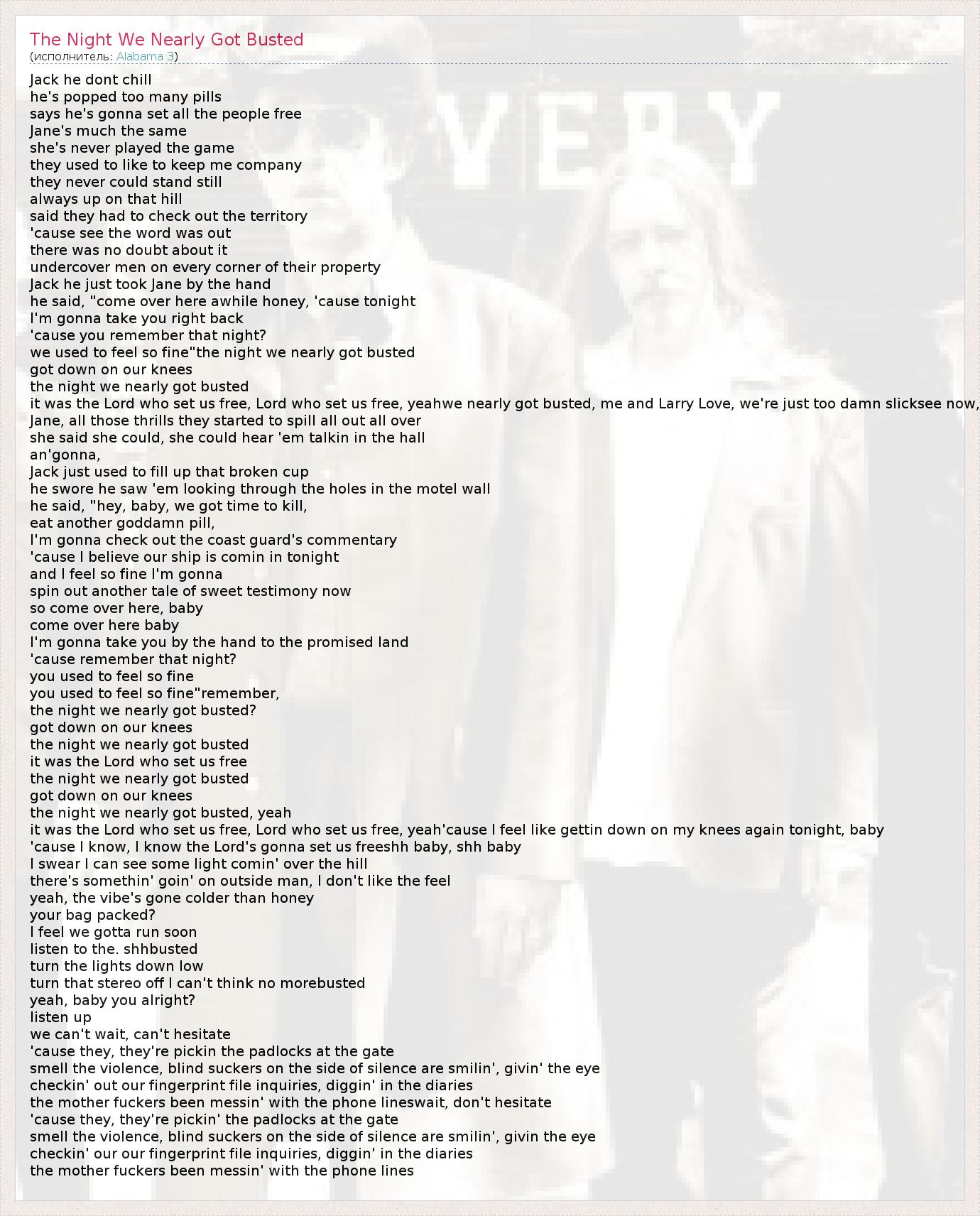 ГлавнаяИсполнителиAlabama 3The Night We Nearly Got Busted