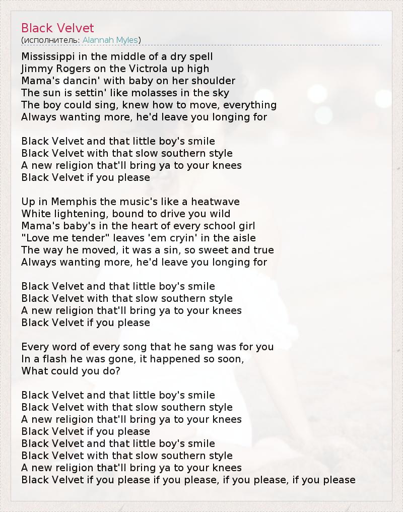 А как ты думаешь, о чем песня "Black Velvet" ?