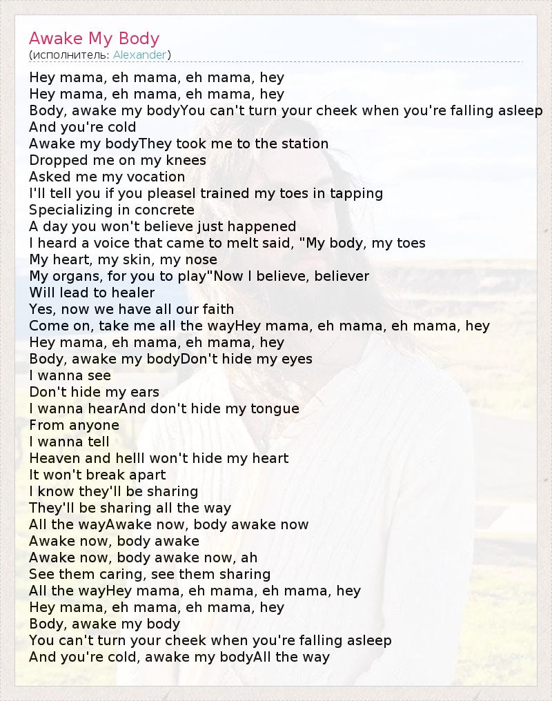 А как ты думаешь, о чем песня "Awake My Body" ?
