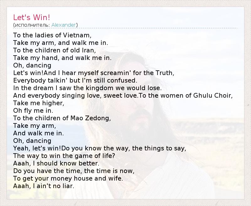 А как ты думаешь, о чем песня "Let's Win!" ?