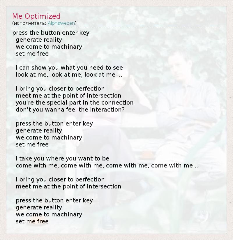 А как ты думаешь, о чем песня "Me Optimized" ?