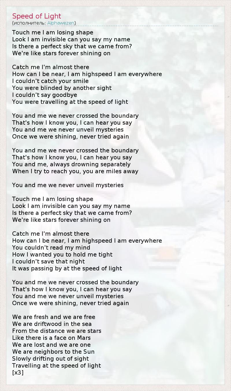 А как ты думаешь, о чем песня "Speed of Light" ?