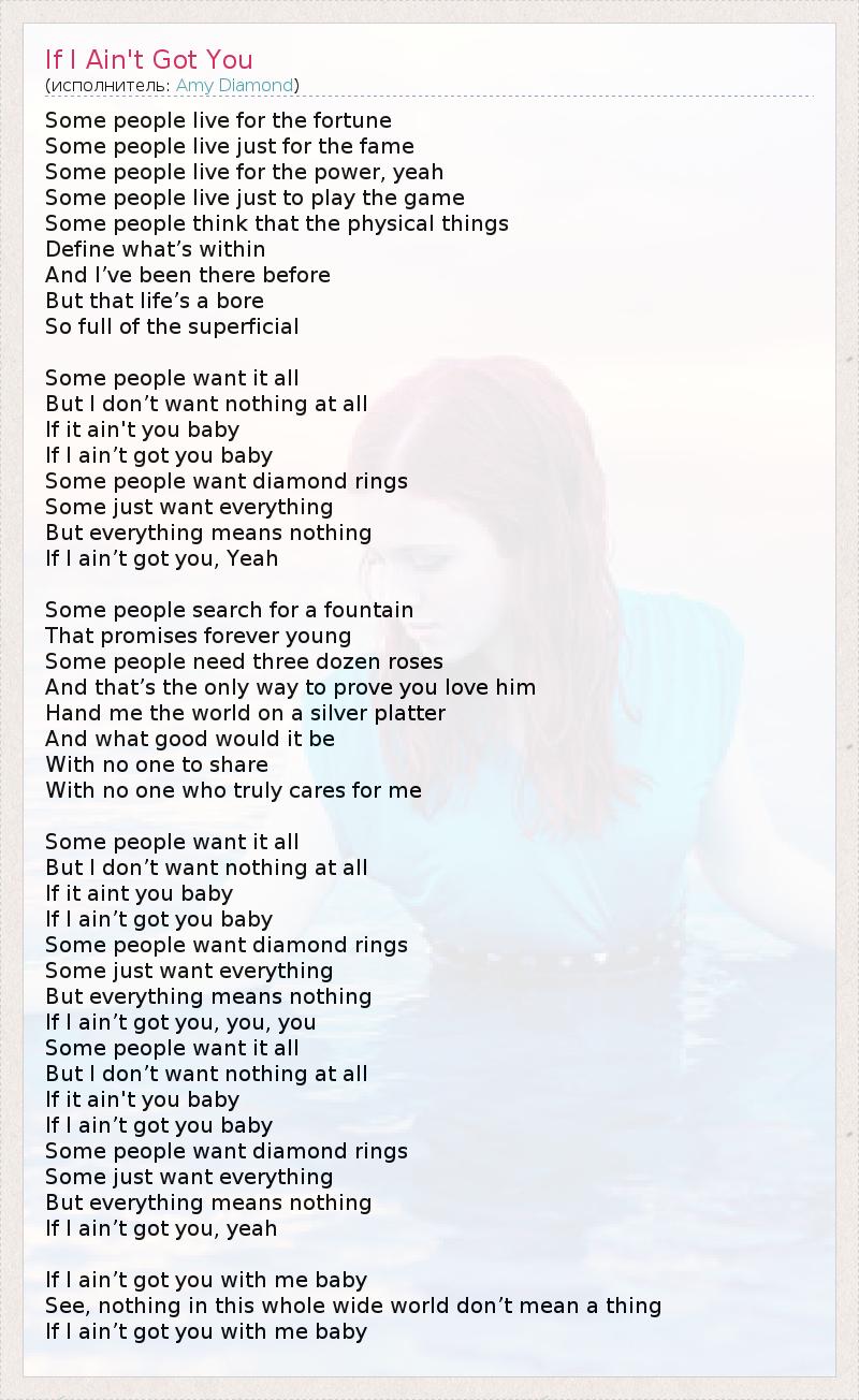 А как ты думаешь, о чем песня "If I Ain't Got You" ?